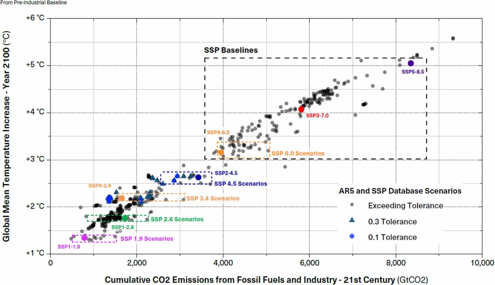 The report guesses (sorry, wrongly) that a SSP-7.0 scenario might be an appropriate high-end scenario. This is why rigorous evaluation is needed, not guesswork. The SSP-7.0 scenarios are every bit as implausible as the SSP-8.5 scenarios.