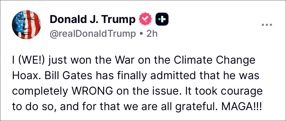 The good guy vs. bad guy trope is exhausting. As someone who's built and deployed climate solutions for a quarter century, I never listened too much to Bill Gates anyway. Even when one political side told us relentlessly to believe him because, you know, he invented software - I viewed his opinions as nice marketing, a nice "win" for political messaging.