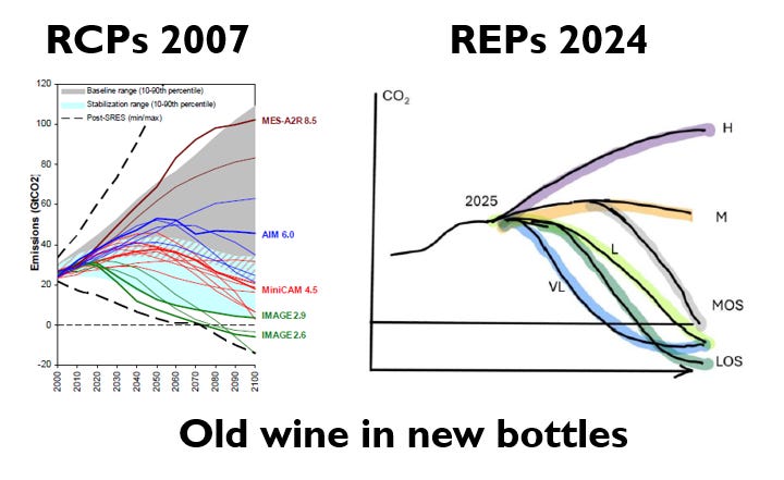 Think again. Last week the climate science community doubled-down on such a decoupling — Meinshausen et al. 2024 call for a new family of Representative Emissions Scenarios (REPs to replace the RCPs):