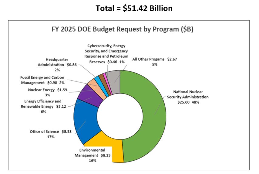 The figure below shows the major elements of the FY2025 DOE budget request to Congress.
