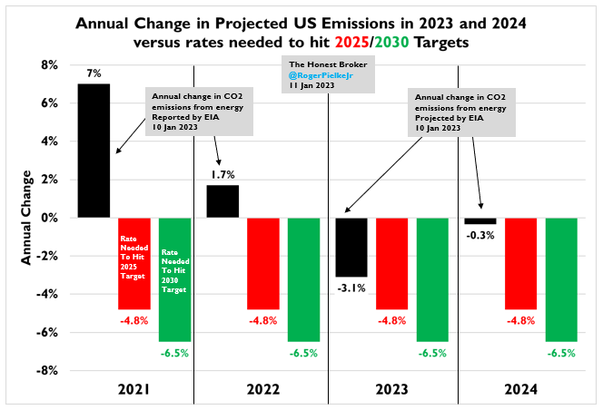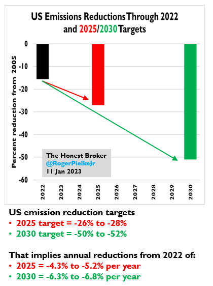 I welcome challenges and different points of view. Matters of policy (especially future policy) are always legitimate subjects for debate and discussion. I’d welcome especially hearing from people who think that the U.S. can hit its targets, and a defense of that position with projected rates of emissions reductions and decarbonization.