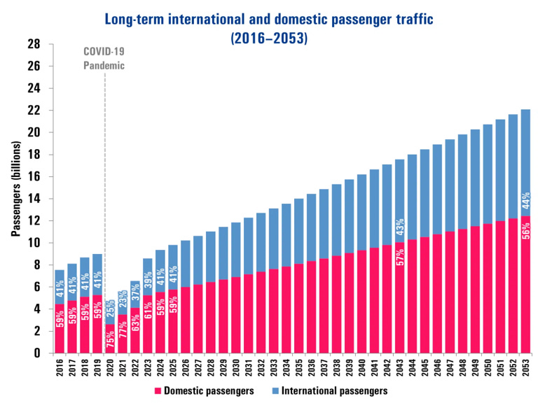 One consequence of improved efficiencies however is often increased use of the more efficient technologies or processes. The figure below shows recent and projected air passenger traffic, which is projected to double over the next 25 years. Improved efficiencies can lead to a rebound effect that leads to greater energy consumption and greater absolute emissions, even as the economy decarbonizes.