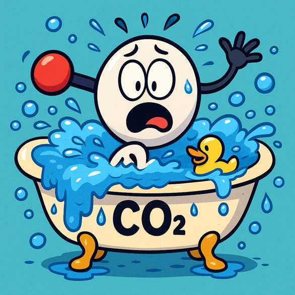 In this analogy you can think of carbon capture and storage as someone using a bucket to remove water from the tub as it fills and dumping it into another reservoir, thereby slowing or stopping the water level from rising in the tub.