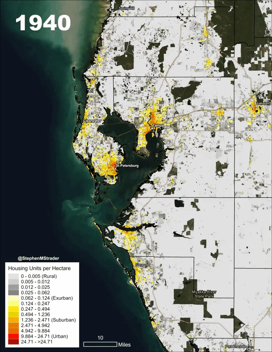 The Tweet above comes from Steven M. Strader who routinely posts fascinating visualizations showing the “expanding bullseye effect,” which he has explored along with Walker S. Ashley. They explain: