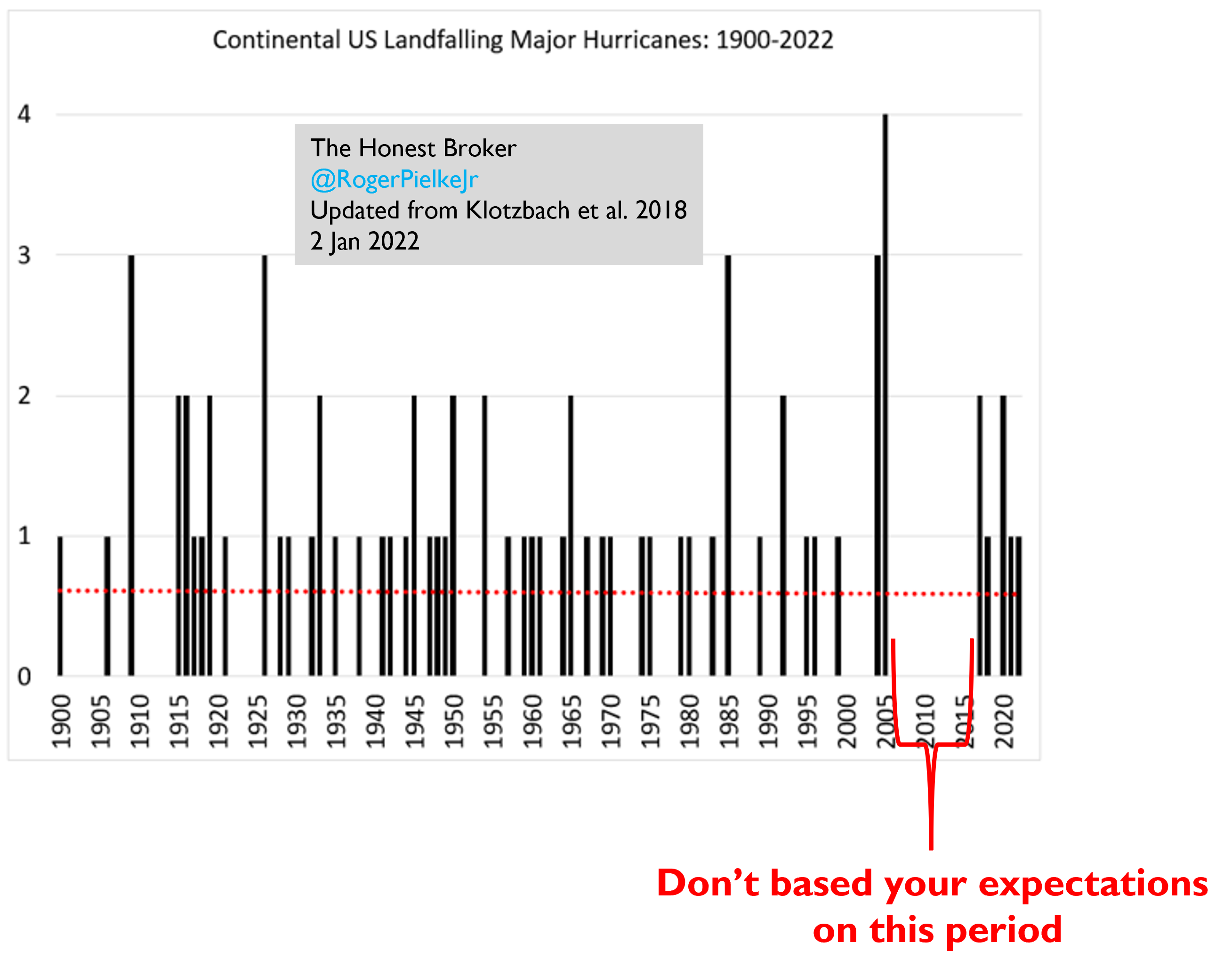 Pielke Jr, R. A. (2009). United States hurricane landfalls and damages: Can one-to five-year predictions beat climatology?. Environmental Hazards, 8(3), 187-200.