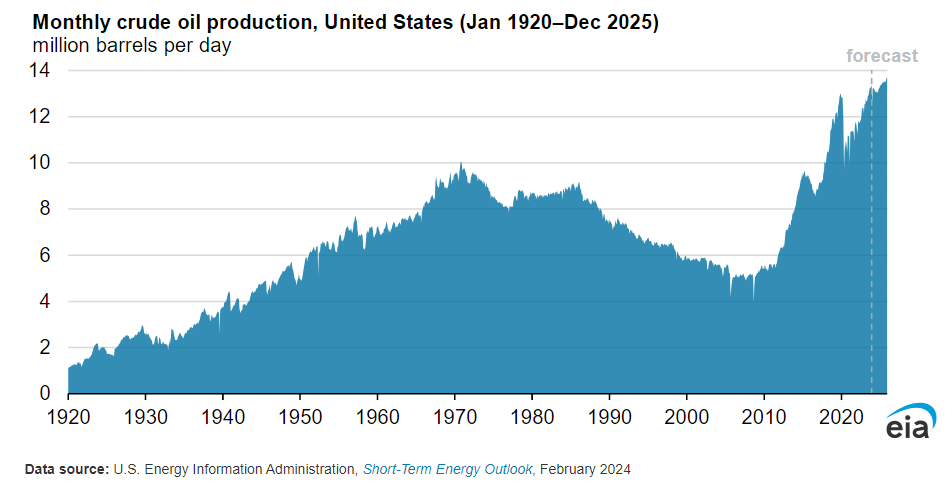 Production on federal lands is of course just a small part of overall U.S. oil production. The figure below shows the overall trend, which has also reached record levels since the pandemic.