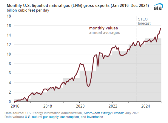 Finally, the figure below shows U.S. LNG exports from 2016 to 2024. Up, up, and up.