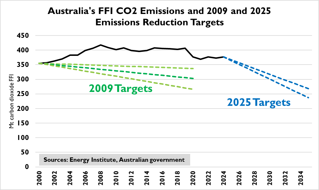 As with the 2009 targets, in 2025 the adoption of impossible goals may be viewed by those promotng them as a feature rather than a flaw. The Australian government explains (emphasis added):