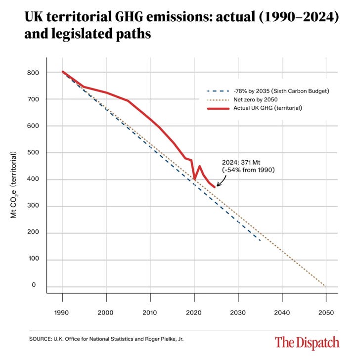 Note: In my March column at The Dispatch, reproduced below, I update an analysis I first published back in 2009 evaluating the emissions reductions targets and timetables of the United Kingdom’s 2008 Climate Change Act. In that paper, I concluded: