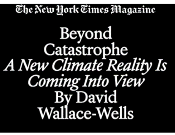 The article in question turned out to be quite interesting — it is titled, “Beyond Catastrophe: A New Climate Reality Is Coming Into View” and is written by David Wallace-Wells. In a nutshell it is about how our expectations of climate catastrophe have been radically scaled back, as readers here will know well.