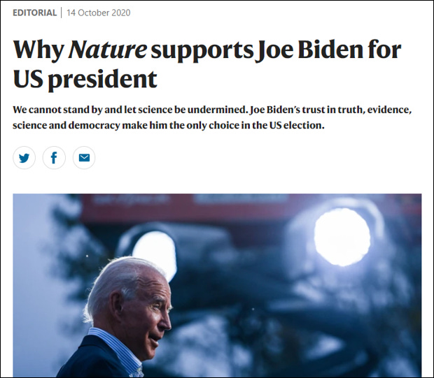 The fact that just under half of U.S. voters who voted in 2020 voted for Donald Trump is clear evidence that the special interests of Nature (a London-based journal) conflicted with the interests of almost half of those who voted.