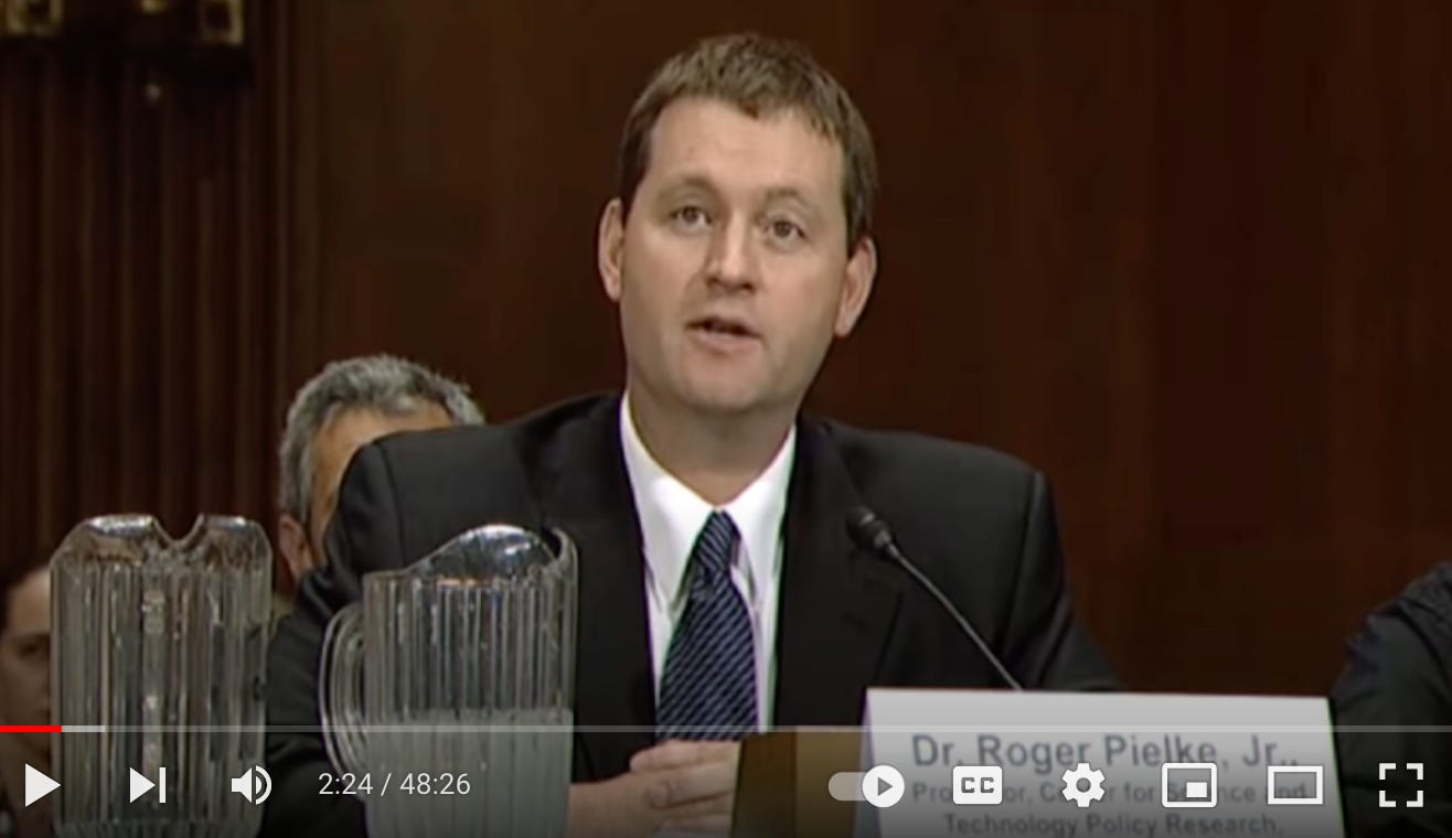 Back in 2013 I was invited to give testimony before the U.S. Senate on what the most recent IPCC and U.S. National Assessment reports said about disasters and extreme events, a subject I had studied since the early 1990s. For those familiar with the framework of The Honest Broker, I took on the perspective of a “science arbiter.” You can read my written testimony here (in PDF) and watch my opening statement below, posted by someone on YouTube. Expert congressional testimony would not seem to be the sort of content to go viral, but this did, reaching over 400,000 views in short order.
