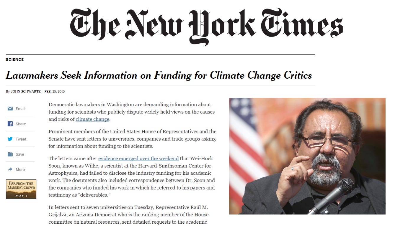 When the Grijalva investigation was completed, I was of course fully exonerated, but by that time everyone — including Rep. Grijalva and Dr. Holdren — had moved on. Their work had been done long before. The announcement of the investigation made the New York Times, its resolution did not.