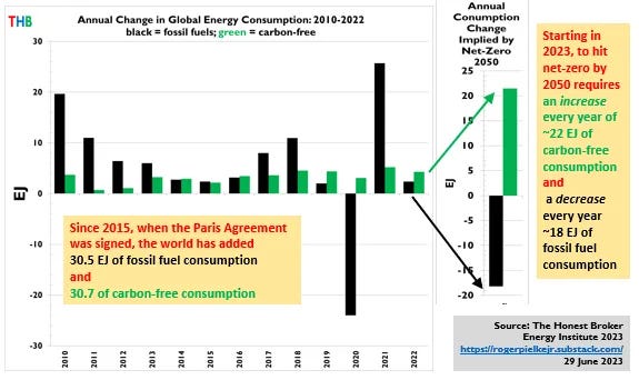 There will be strong incentives this week for those participating in and cheering on COP28 to claim that the UNFCCC, and the Paris Agreement specifically, have already resulted in huge changes in the global energy system trajectory.1 Focus on data and not spin, and thanks to Suzuki et al. we have the data.