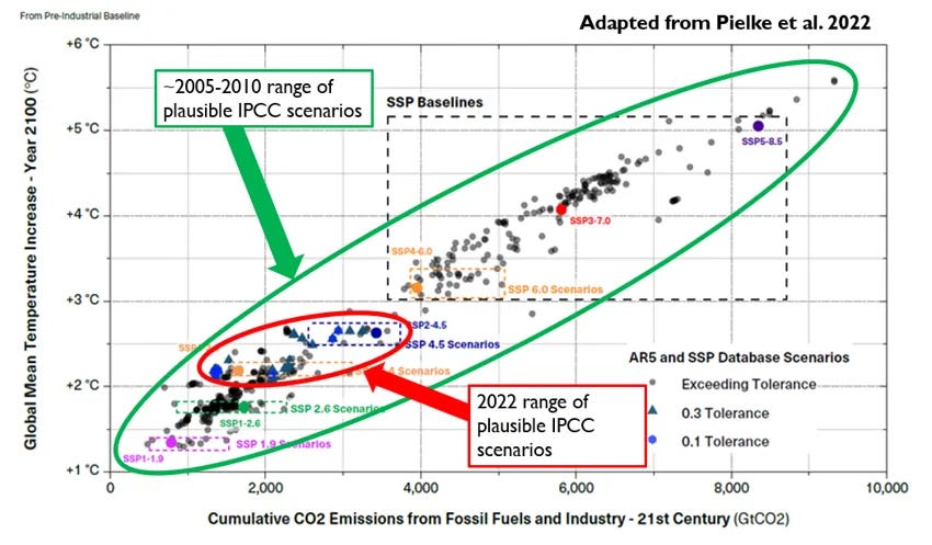 Some comments down in the weeds: The SSP scenarios were intended to replace the RCPs, but never really accomplished that. See Pielke and Ritchie 2021.