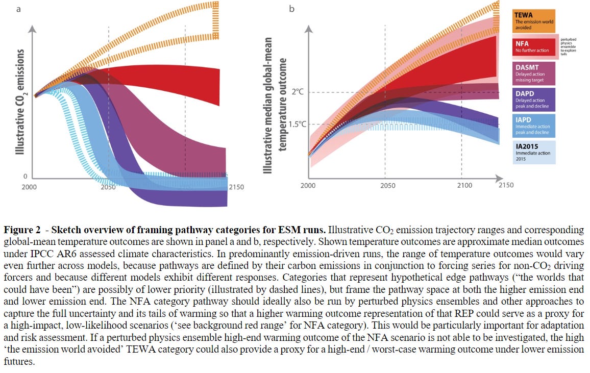 You can see an idealized mock-up of the proposed new family of scenarios in their figure below. Let’s highlight two important points.