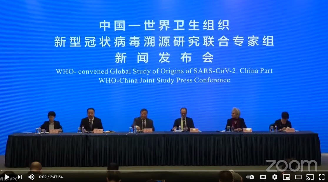 I am obvious not qualified to render judgments as to the likelihood of various COVID-19 origin hypotheses, but I am well qualified to render judgments of the validity of evidentiary claims in support of hypotheses. And in these interviews, and others I’ve seen, Daszak and other WHO Team members have provided very little evidence to support any of the initial conclusions that have been advanced by the investigation team.