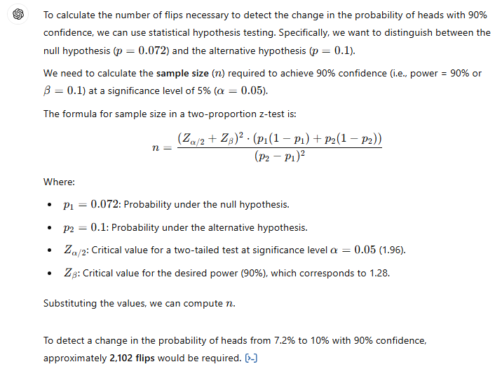 According to ChatGPT, as you can see in a coin flip example below, more than 2,100 years.3